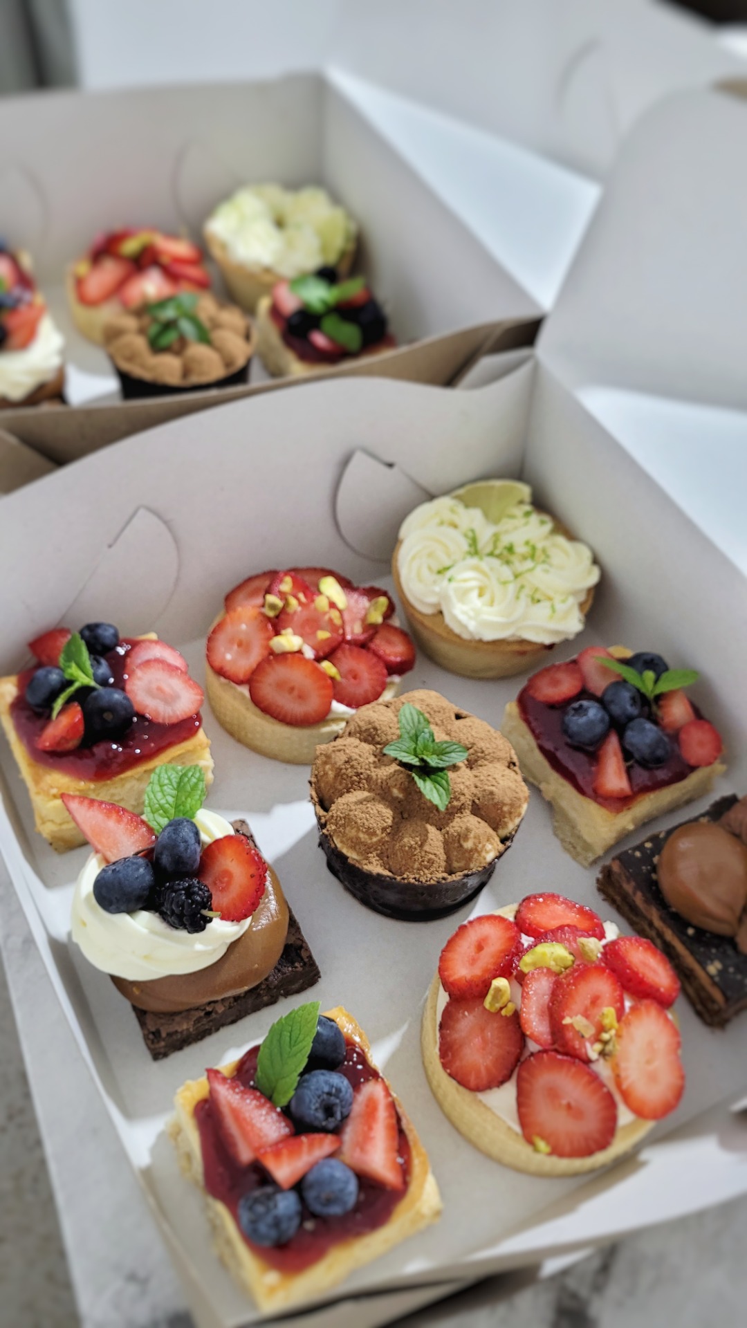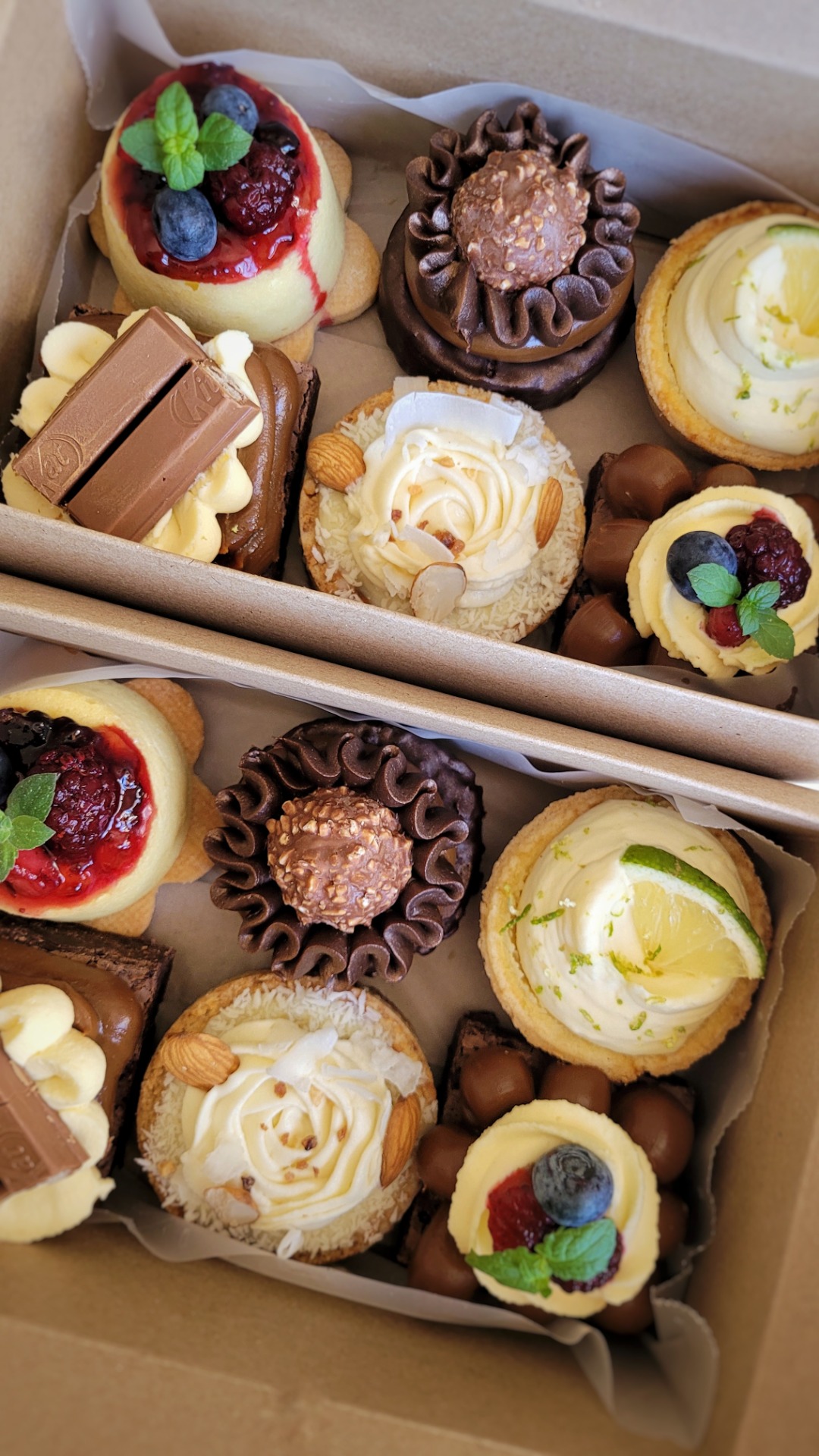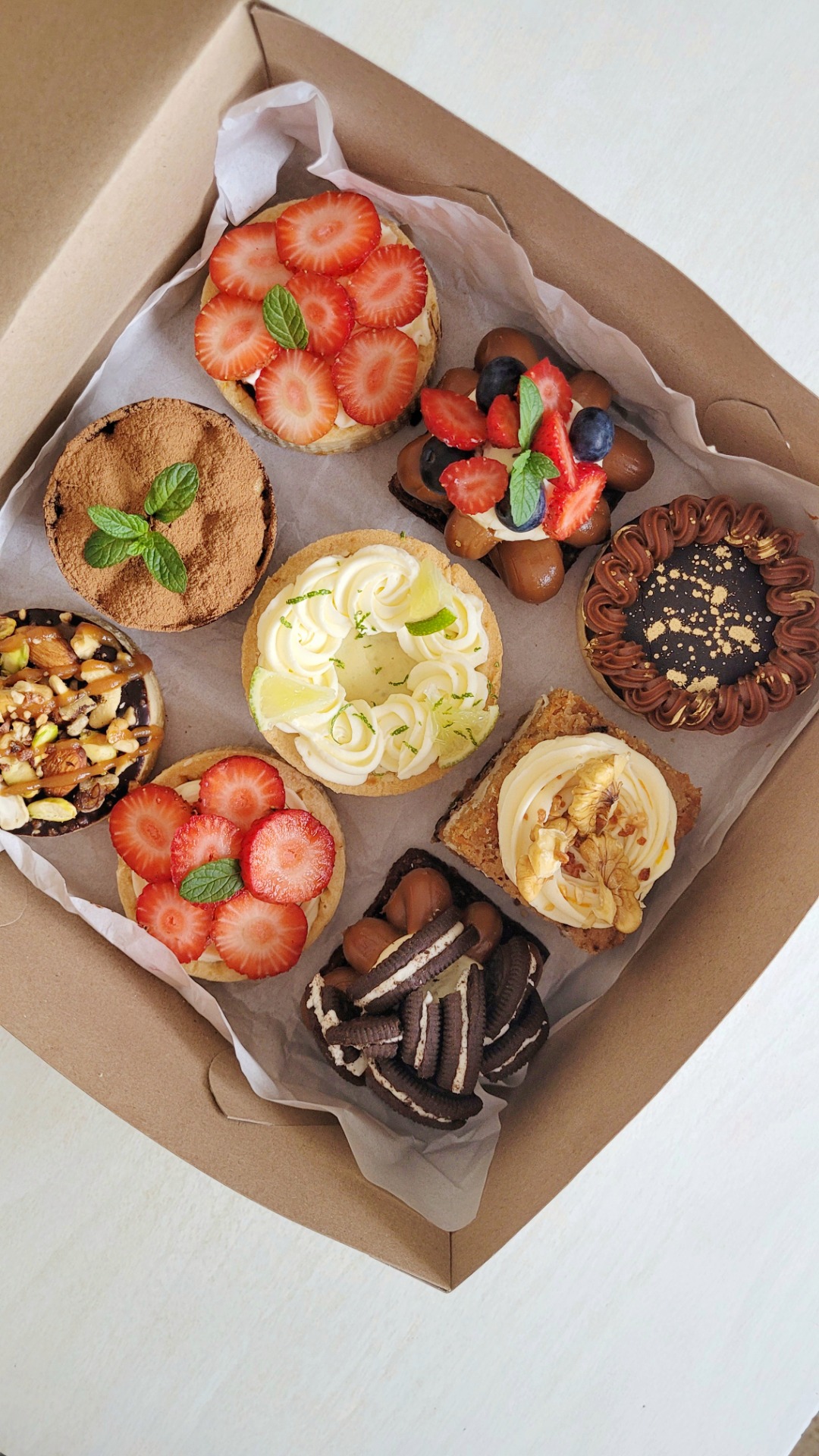 Sabores disponibles:Cheesecake frutos rojosCheesecake chocolateBrownie frutos rojosBrownie bombaChocotortaBanana splitTarta bombonProfiterol pistachoTarta de limaTarta de frutillasAmanda (de autor)Abracitos ferrero (de autor)Tiramisu
